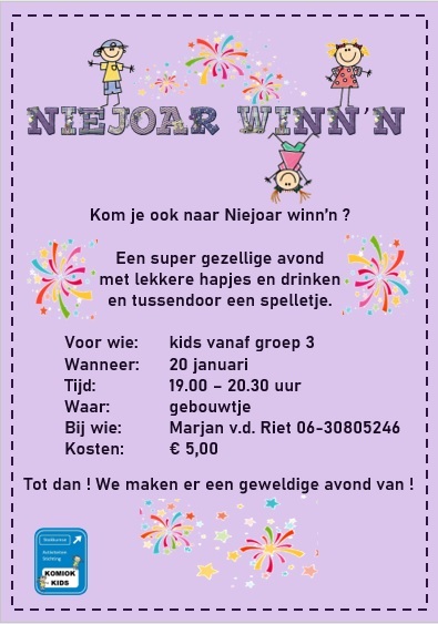 Komiok Kids organiseert a.s. vrijdag 20 Januari '23 een hele gezellige activiteit: