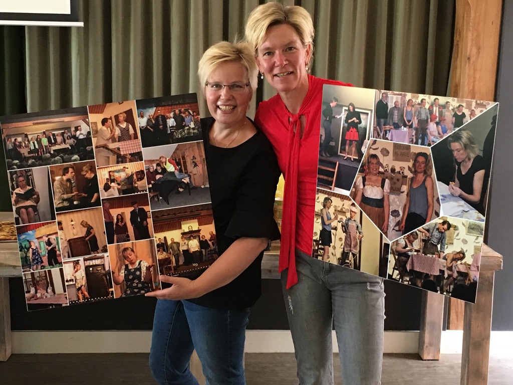 Ook namen we na 10 jaar trouwe ondersteuning afscheid van Rianne Stomps. Rianne werd in 2008 gevraagd om te komen souffleren en te helpen de rollen te leren. Tot dat in 2013 ze plotseling door uitval van één van de spelers ook op de bühne kwam te staan. Naast het souffleren was Rianne ook altijd in de weer bij de opbouw van het toneel, schilderen en schuren, kortom het was je nooit te veel. Rianne bedankt voor alles en ook de lekkere Appelboterkoeken.