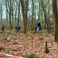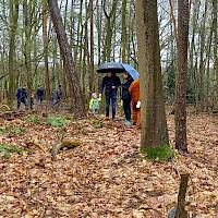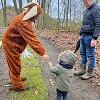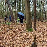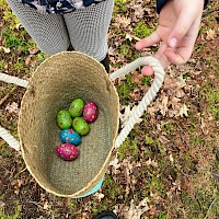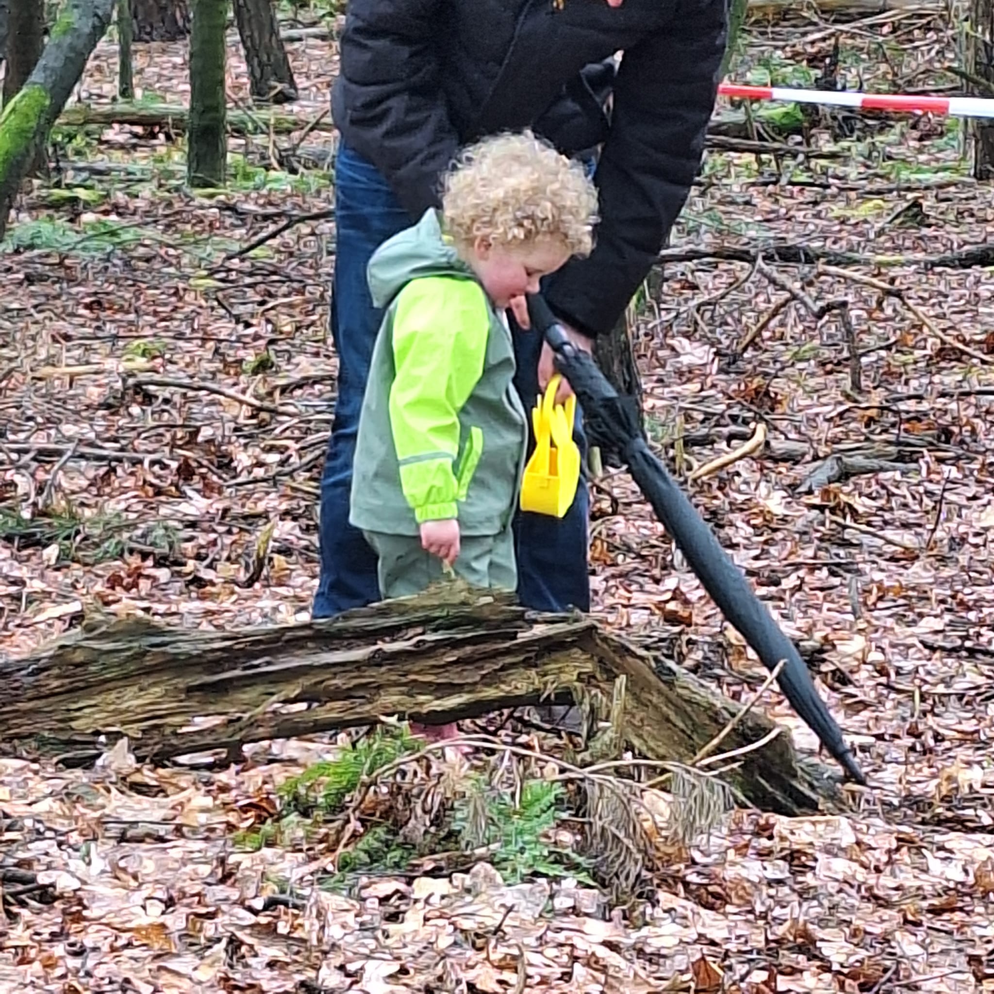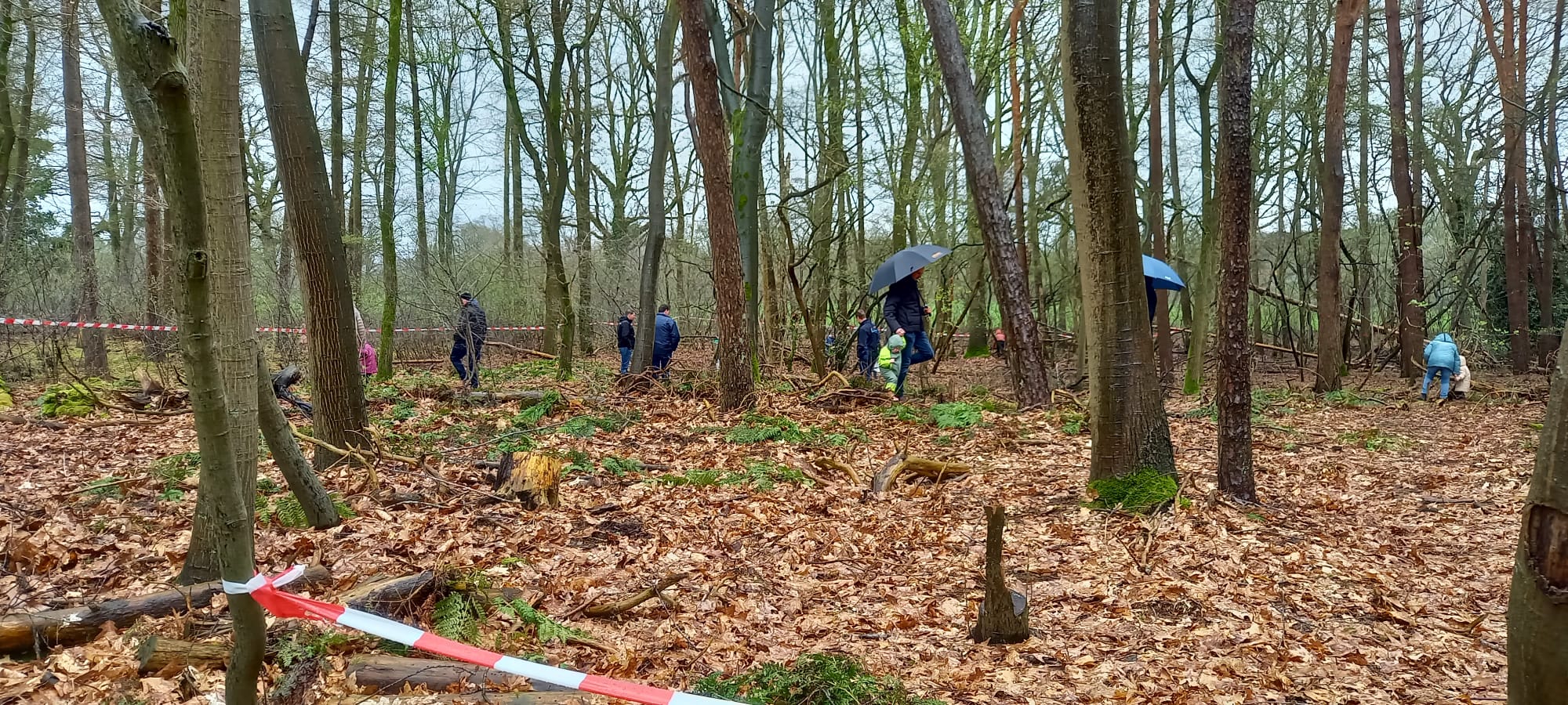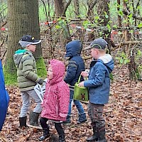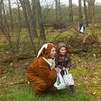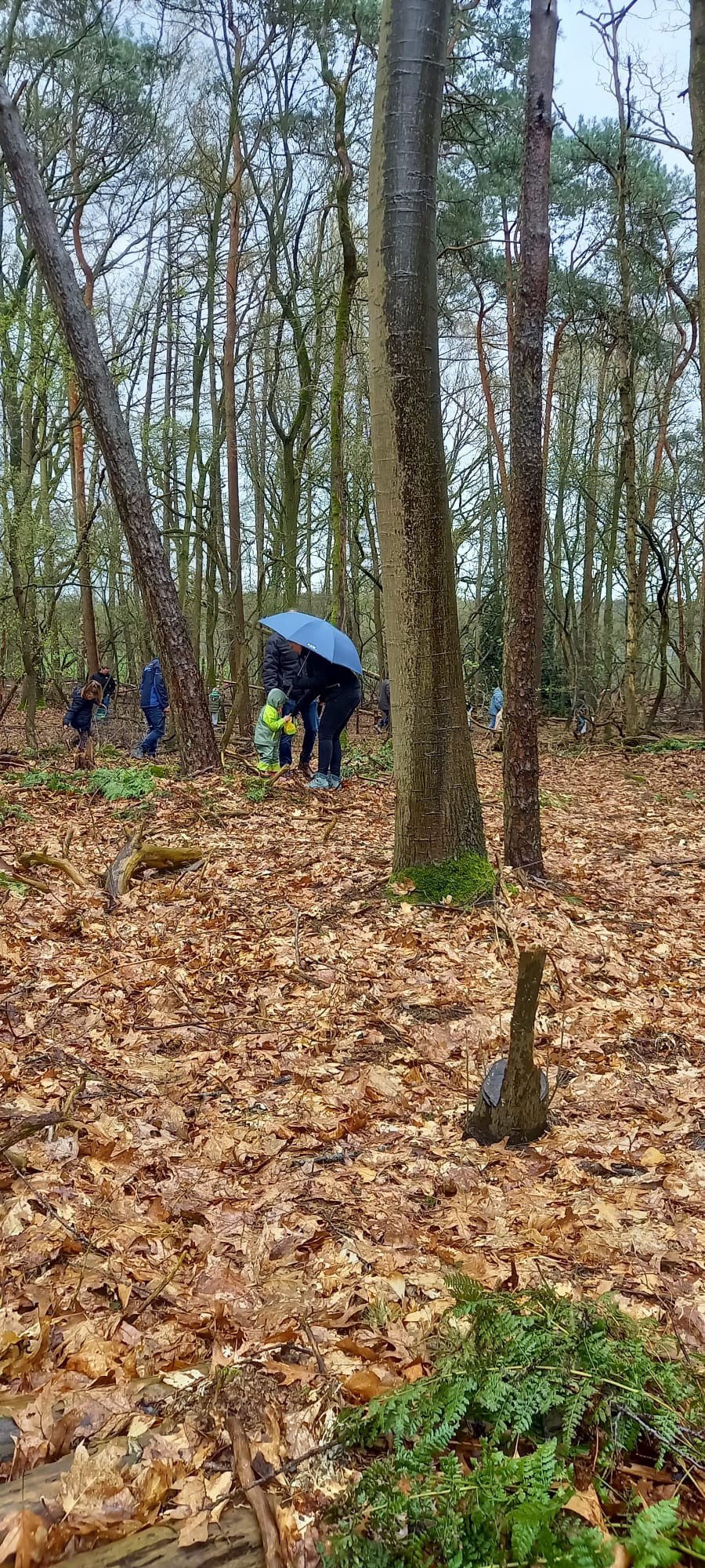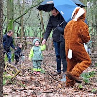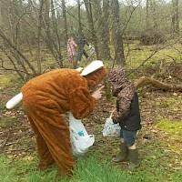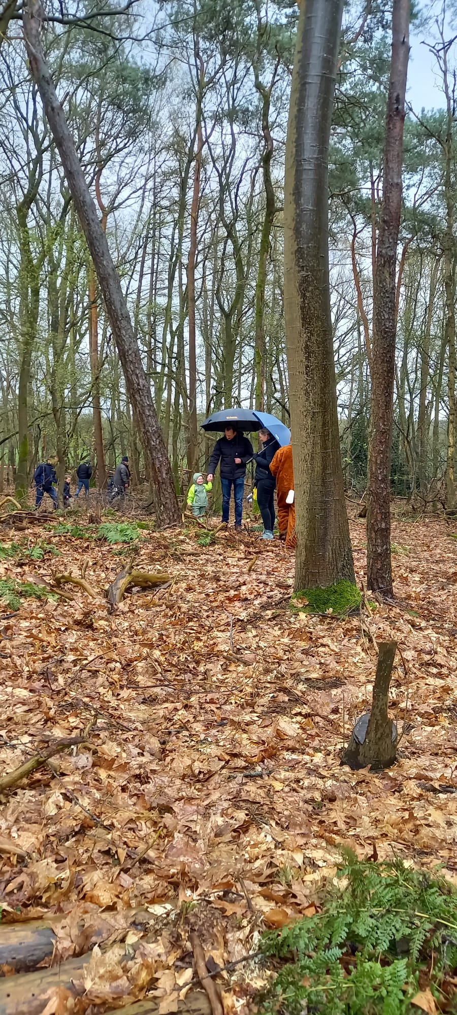 21 kinderen en hun ouders lieten zich niet ontmoedigen door de regenbuien gisteren en gingen op zoek naar de verstopte eieren in het paashazenbos in Stokkum.