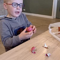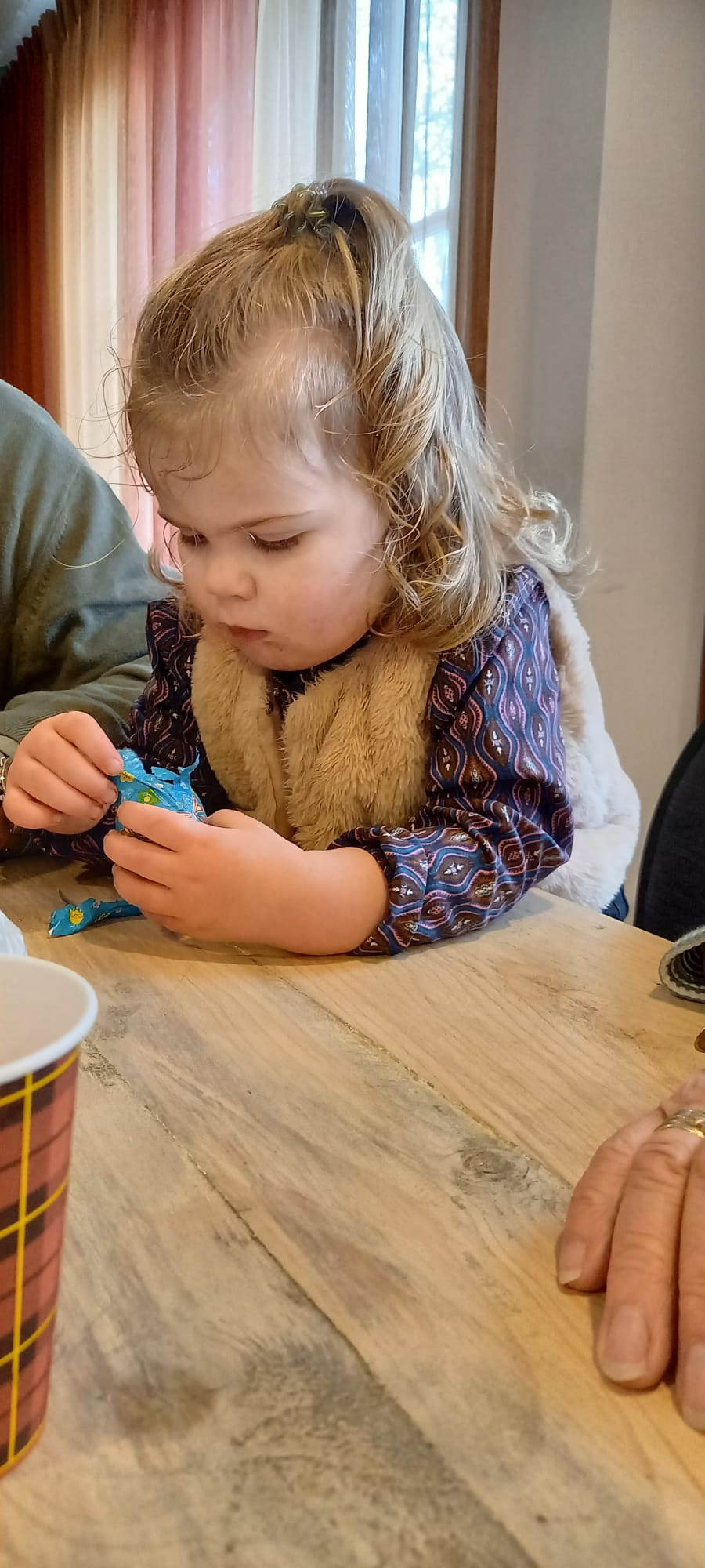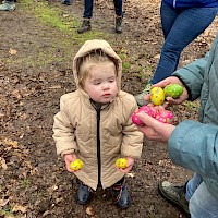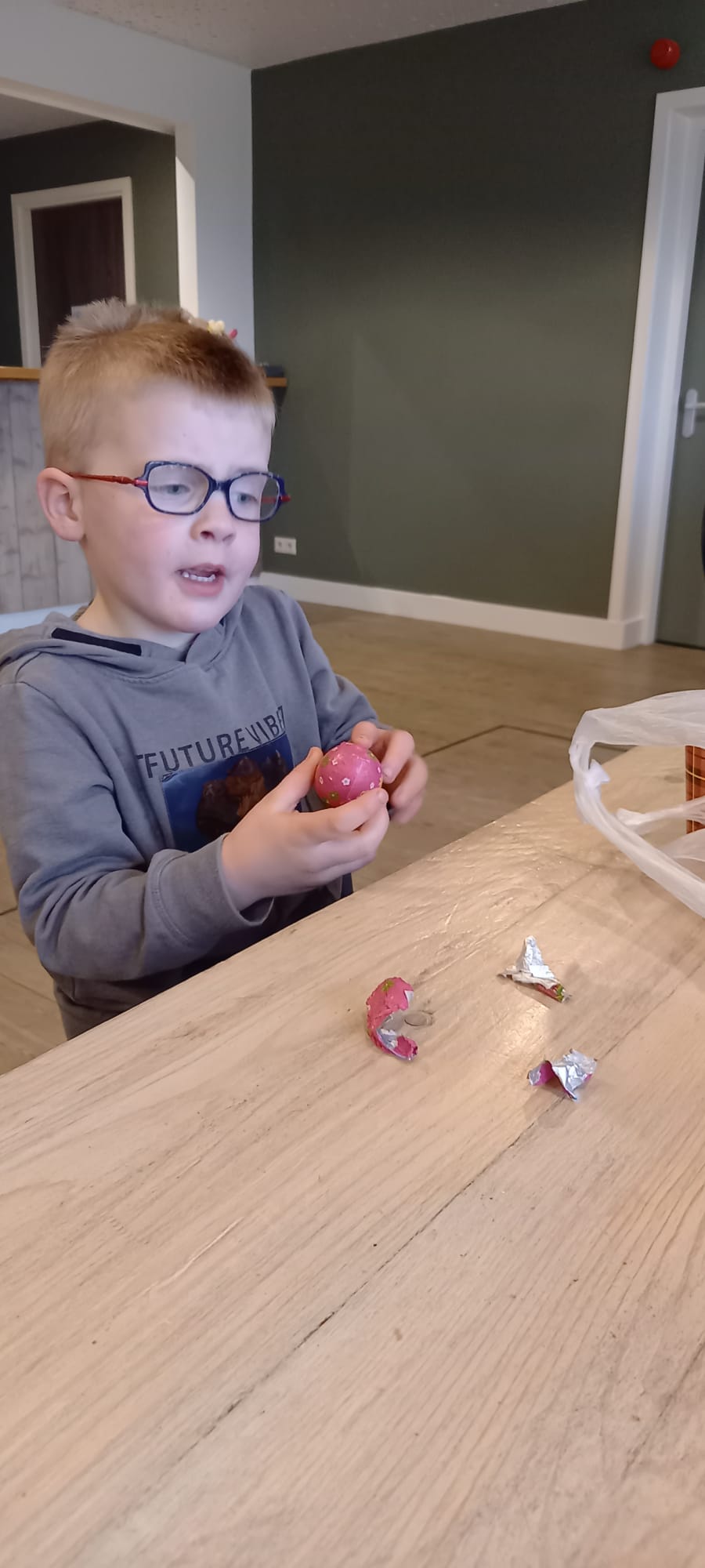 De paashaas had weer vele eieren verstopt en hierdoor hadden de kinderen allemaal veel eieren gevonden (al dan niet met een beetje hulp). Zelfs de jongste inwoner van Stokkum was erbij, je kunt hier niet vroeg genoeg mee beginnen.