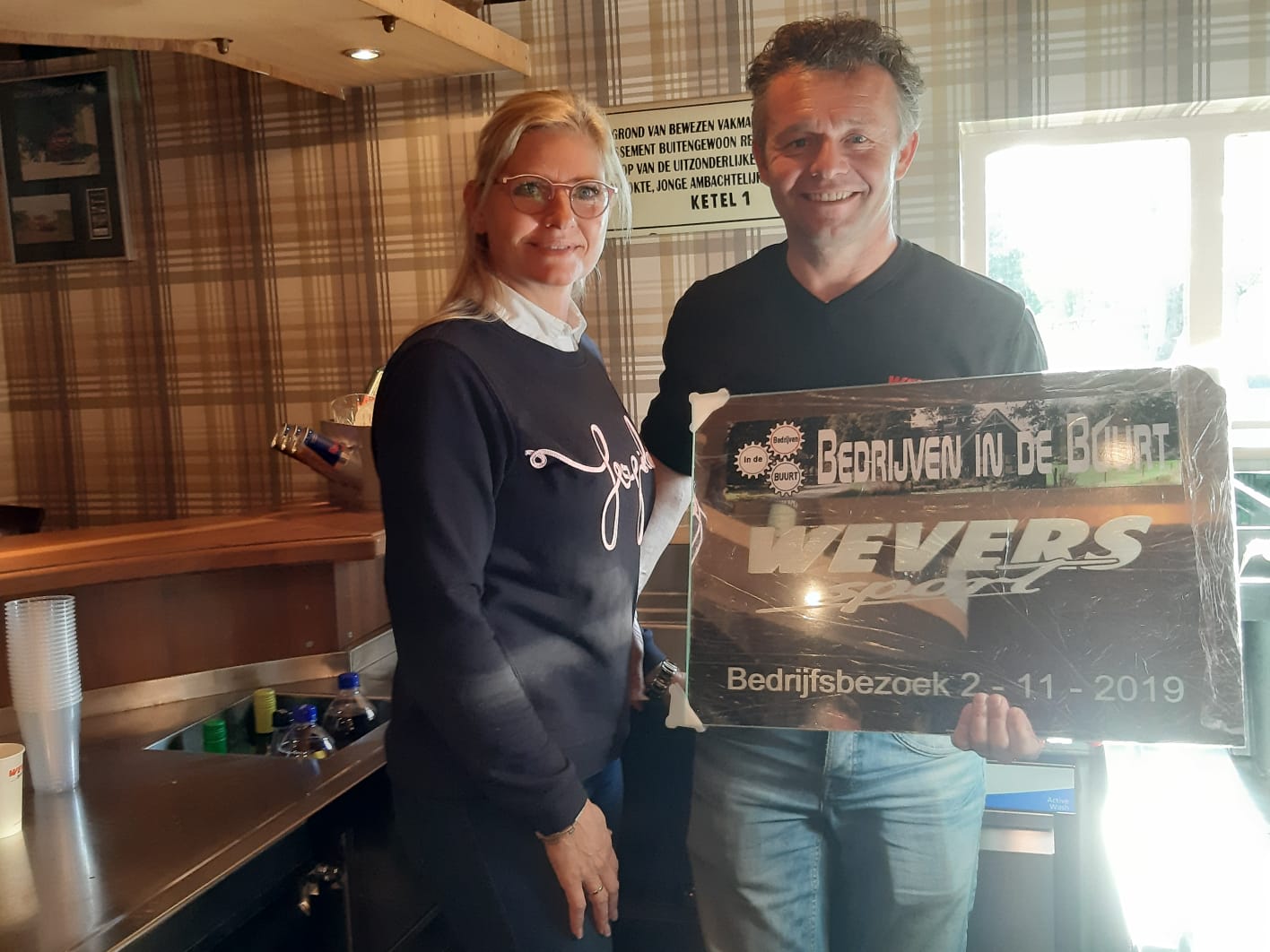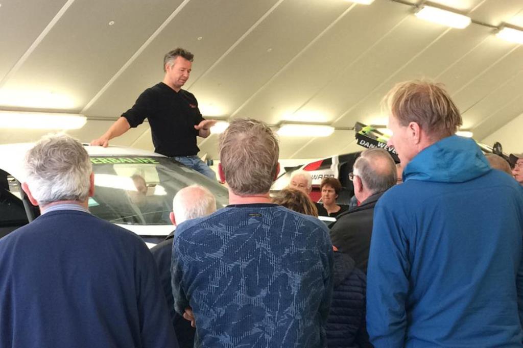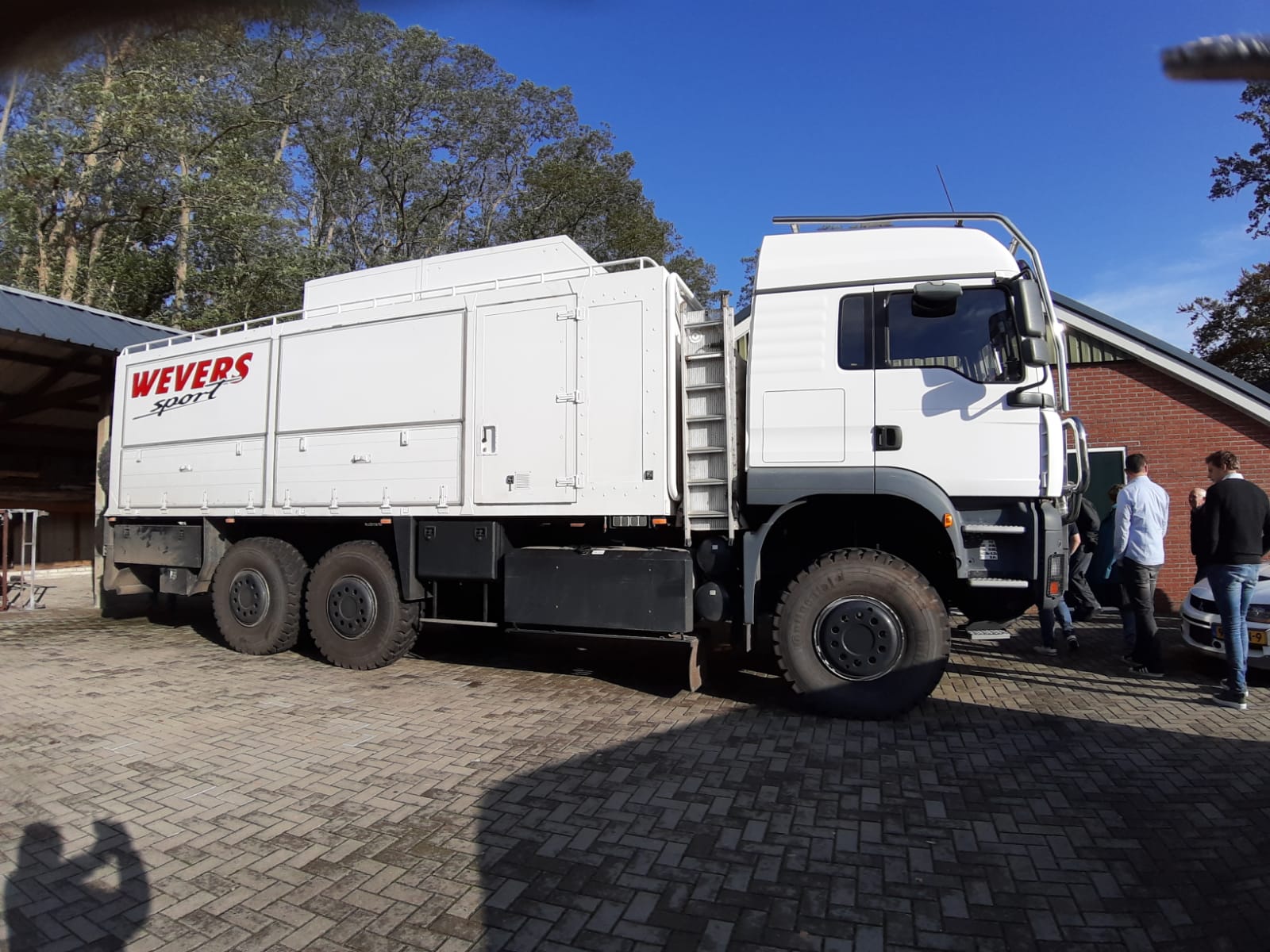 Tijdens de rondleiding konden we de rally auto’s en de Dakar auto’s bekijken. Na de rondleiding was er gelegenheid om een consumptie te nuttigen en werd aan Erik de spiegel met het logo van Wevers Sport aangeboden door de voorzitster Maria Lüth.