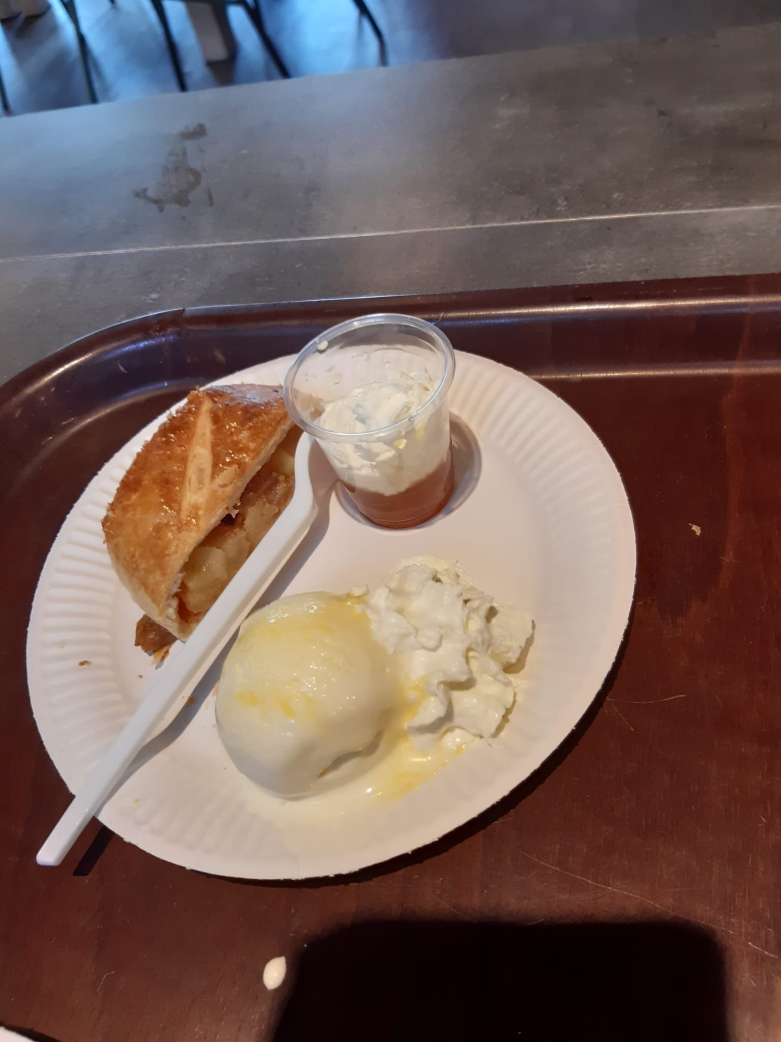 Het hoofdgerecht: een heerlijk stoofpotje met aardappelpuree en een stoofpeertje werd genuttigd bij Fam. Immink. Hierna liep de route weer richting “het gebouwtje” waar een geweldig toetje klaar stond. Dit maakte voor iedereen de dag “lekker ”compleet!!