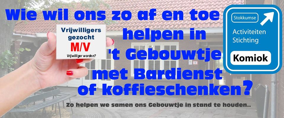 Als je een keer wilt helpen, laat het dan even weten. Hiervoor kun je je aanmelden bij Annemieke Immink Tel 06-10273311 of per email: secretariaat@stokkum.info.
