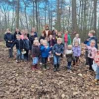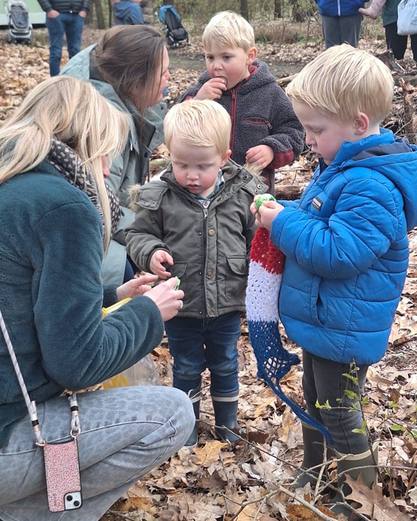 Op zondag 29 maart trokken we met 30 kinderen en ouders het paashazenbos in om paaseieren te zoeken. Komiok heeft wat geholpen door delen van het bos met lint af te zetten zodat we beter konden zoeken. Nou, ze lagen echt overal de eieren; in het mos, onder omgevallen bomen, onder de bladeren en soms ook op takken. Er bleef geen ei achter, iedereen kwam met een tas met eieren terug. De gouden eieren werden gevonden door de geluksvogels Wout Luttikhedde en Dorian Schinkel. Na afloop hebben we nog gezellig ranja gedronken in het Gebouwtje en kregen we een tattoo op de arm. Het was erg leuk en zijn ook nog met de Paashaas op de foto gegaan. Paashaas bedankt!