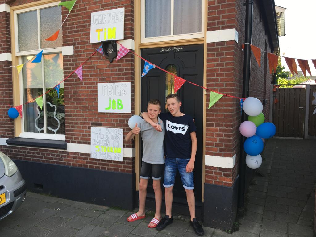 Het was nogal een verrassing voor Job en Tim Wiggers. Nog maar pas op school in Stokkum en nu beide met de winst er vandoor gaan. Dat gebeurde zaterdag avond tijdens het vogelgooien voor kinderen t/m 11 jaar en vogelschieten voor de jeugd van 12 t/m 17 jaar. Tim won het vogelgooien en Job het vogelschieten.