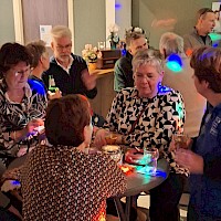 Vrijdagavond gingen we terug naar de jaren 70-80. De dj's Egbert en Peter hadden grote bakken met langspeelplaten mee waar iedereen doorheen kon "bladeren"om verzoeknummers door te geven. Er werd gezongen, gedanst, gelachen en bijgepraat. De aankleding was helemaal in style, incl (kauwgom-)sigaretten op tafel. Alle aanwezigen waren erg enthousiast en vonden deze nieuwe activiteit van KOMIOK zeker voor herhaling vatbaar!