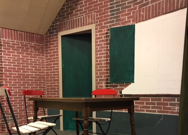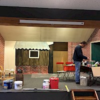Vorige week is de schilder begonnen met de basis van het decor voor het toneelstuk van 2018. Deze week zijn de 'eerste stenen gelegd'.